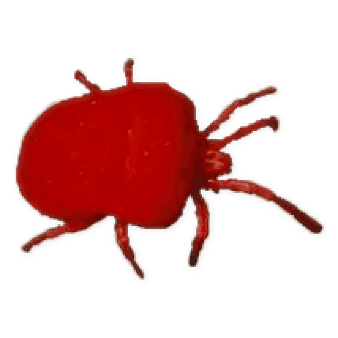 Les acariens adultes pondent leurs œufs dans des matières végétales en décomposition et en quelques jours les œufs éclosent en larves hexapodes. Ces dernières sont d’une couleur orangée caractéristique et mesurent 200 à 300 µm (à jeun). Seules les larves sont parasites.