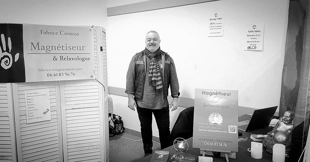 Vous trouverez ci-dessous des photos ou articles sur les salons auxquels j'ai participé - j'ai été interviewé à l'occasion de ce salon où je présente mes services et où j'aborde succinctement ma conception du métier de magnétiseur (j'entre un peu plus dans le détail dans cette explication complète.)