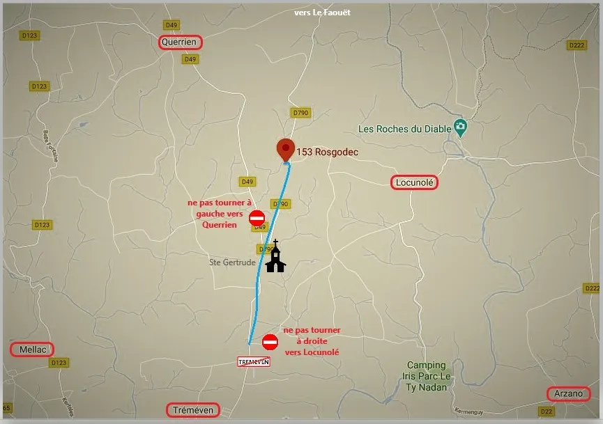 plan pour se rendre au cabinet de Fabrice Corazza magnétiseur guérisseur coupeur de feu locunolé tréméven quimperlé le faouët